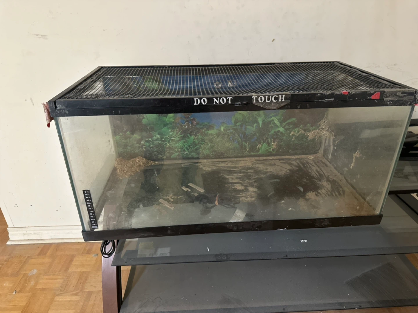 Offering a pre-owned glass terrarium tank in fair condition, suitable for housing reptiles or small animals. Additionally, it may be utilized as an aquarium.