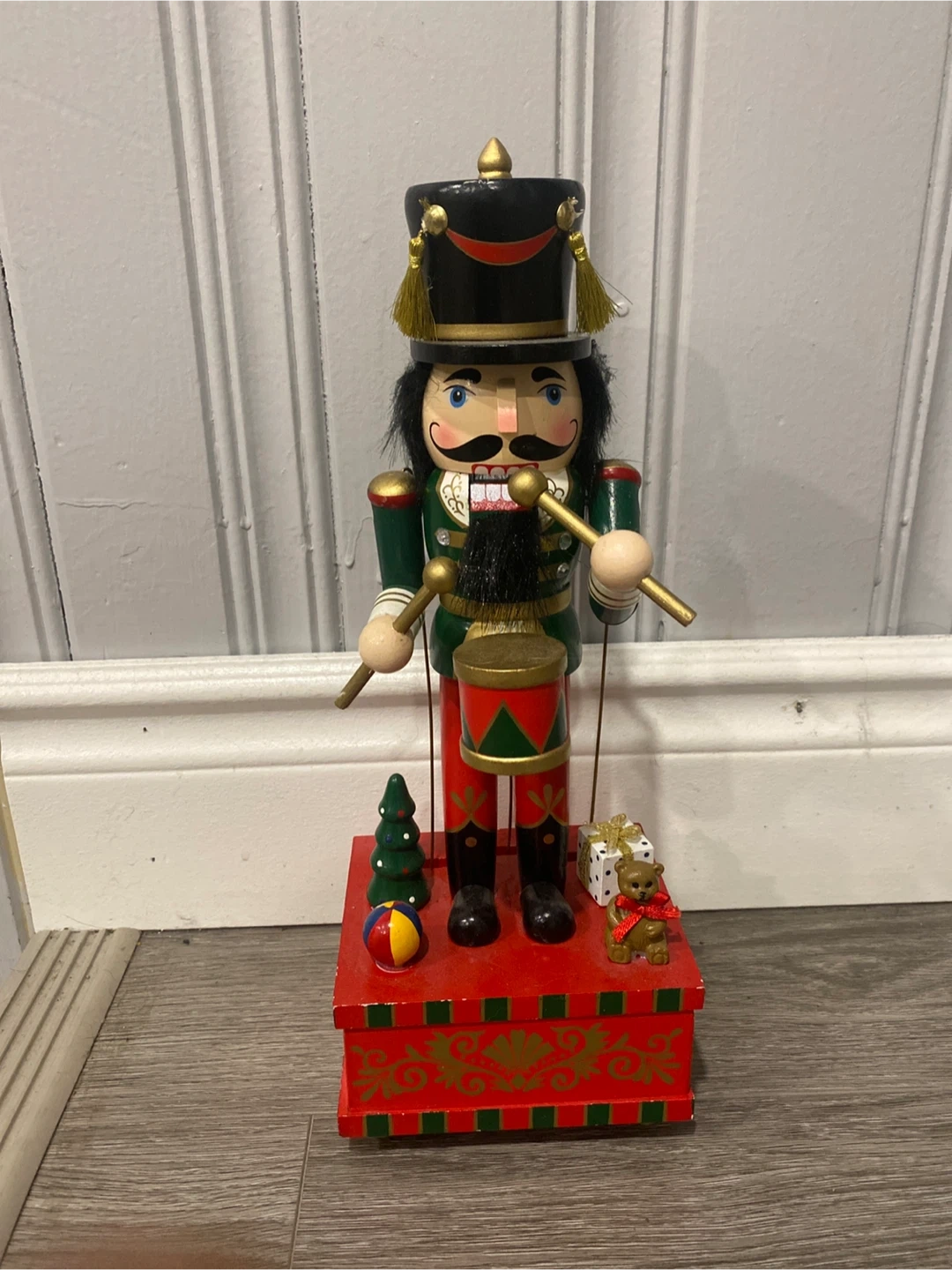Here's a charming wooden nutcracker figurine, ready to add a touch of festive cheer to your home! This adorable drummer is sure to bring a smile to your face during the holiday season