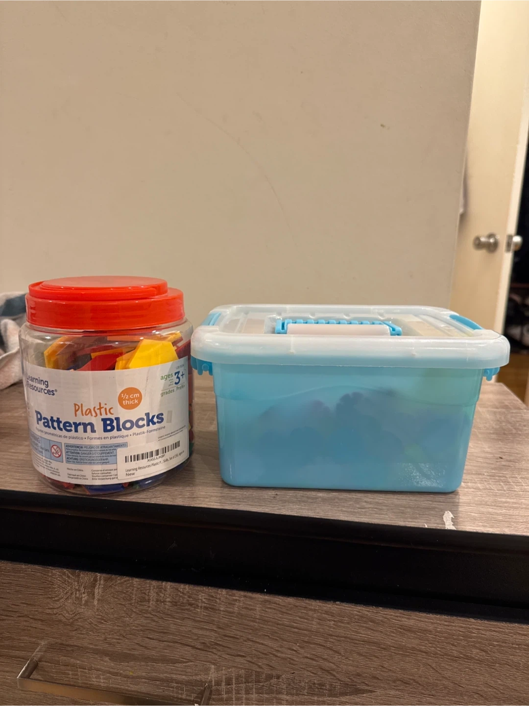 I'm selling a set of Learning Resources plastic pattern blocks! And building plates. These are great for kids ages 3 and up. Perfect for early math skills and creative play.