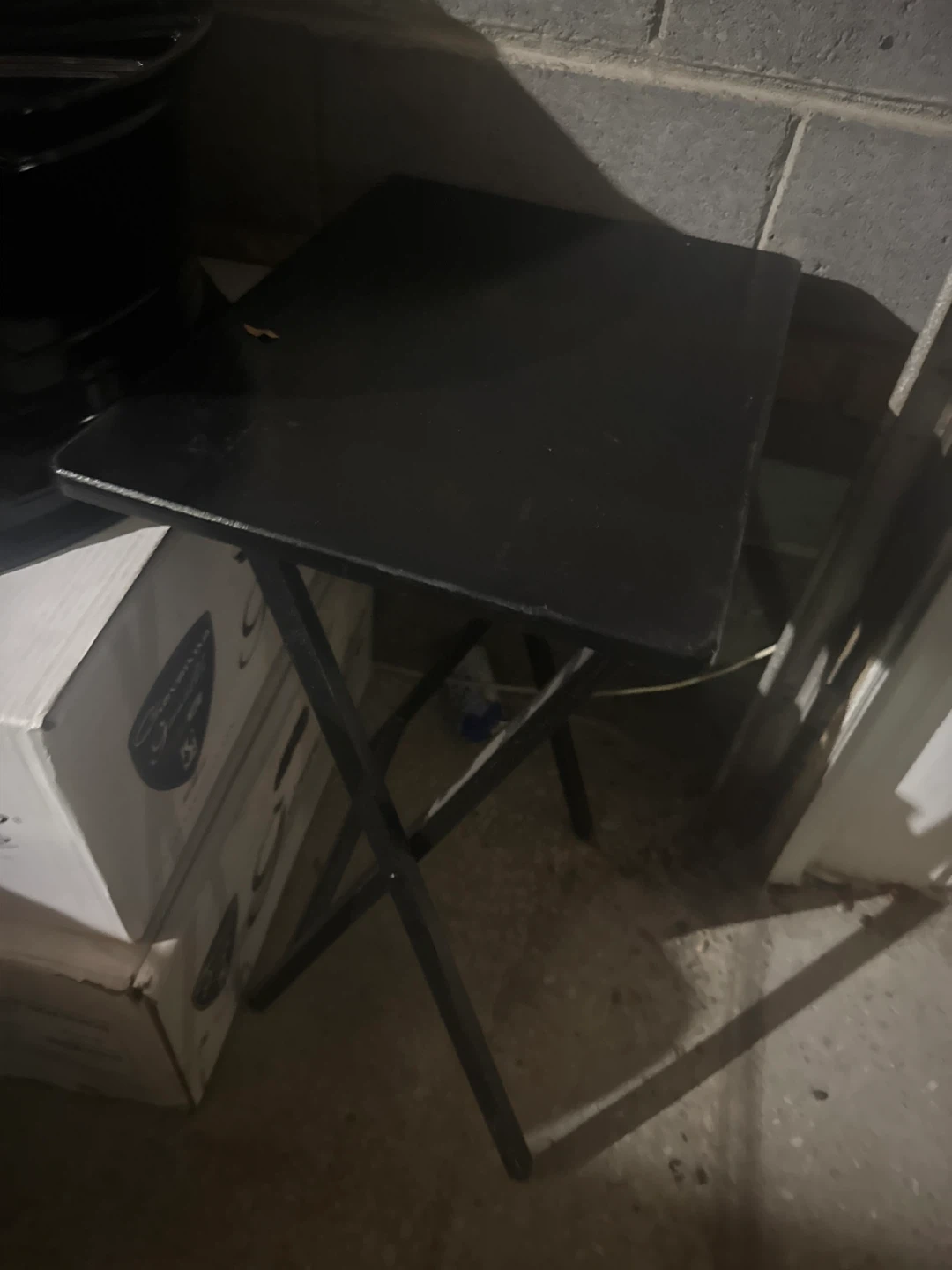 Selling a black folding table! It's perfect for snacks, drinks, or even as a small workspace. It's in good condition and ready for a new home