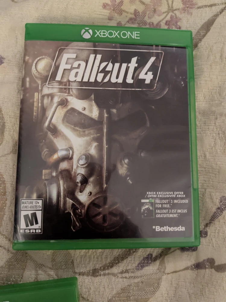 Buy & SellFallout 4 - Xbox OneFallout 4 - Xbox One$15Selling Fallout 4 for the Xbox One! It's rated M for Mature audiences.ConditionLike new0 chats·0 favorites·1 viewsSELLERverifiedChrista SmithDowntown800 reviewsWHERE TO MEETCheck Location