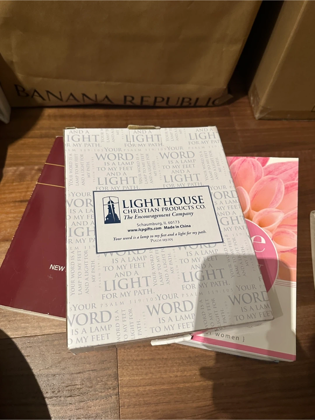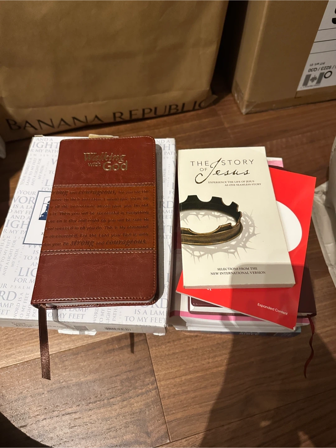 Selling a variety of Christian books including a Holy Bible, The Story of Jesus, Walking with God, and other religious books
