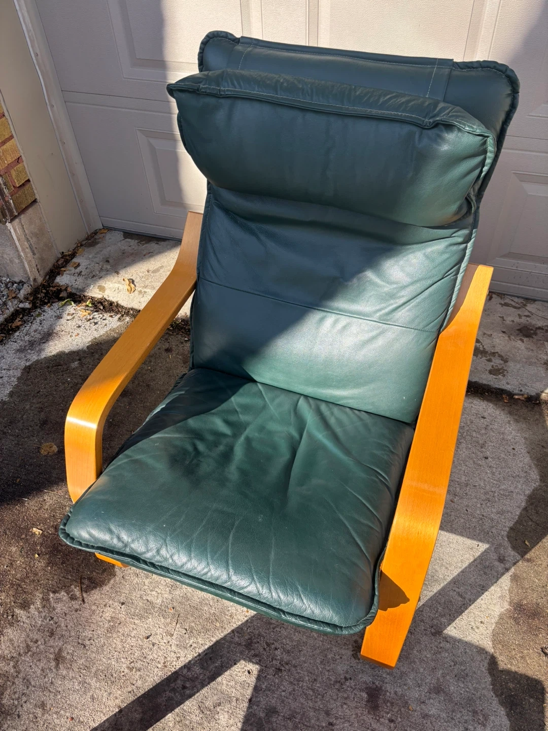 **$115** Vintage Green Leather Lounge Chair. Made in Europe 🇪🇺