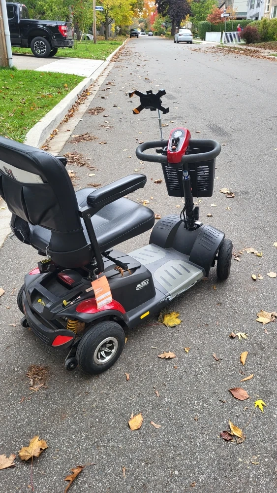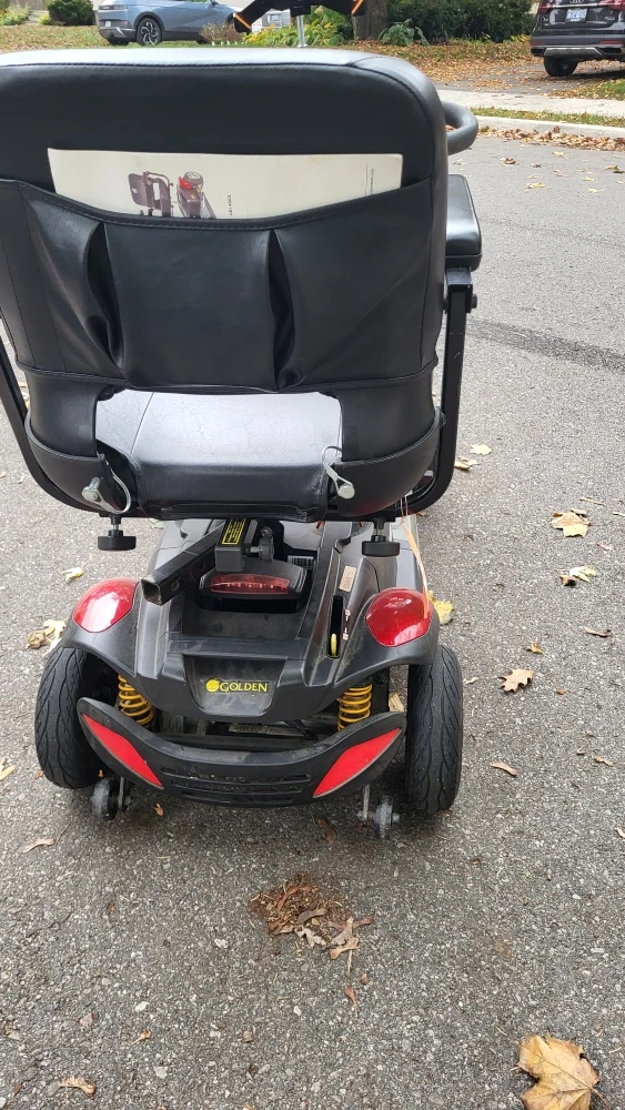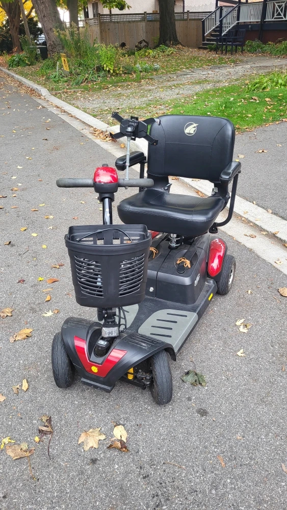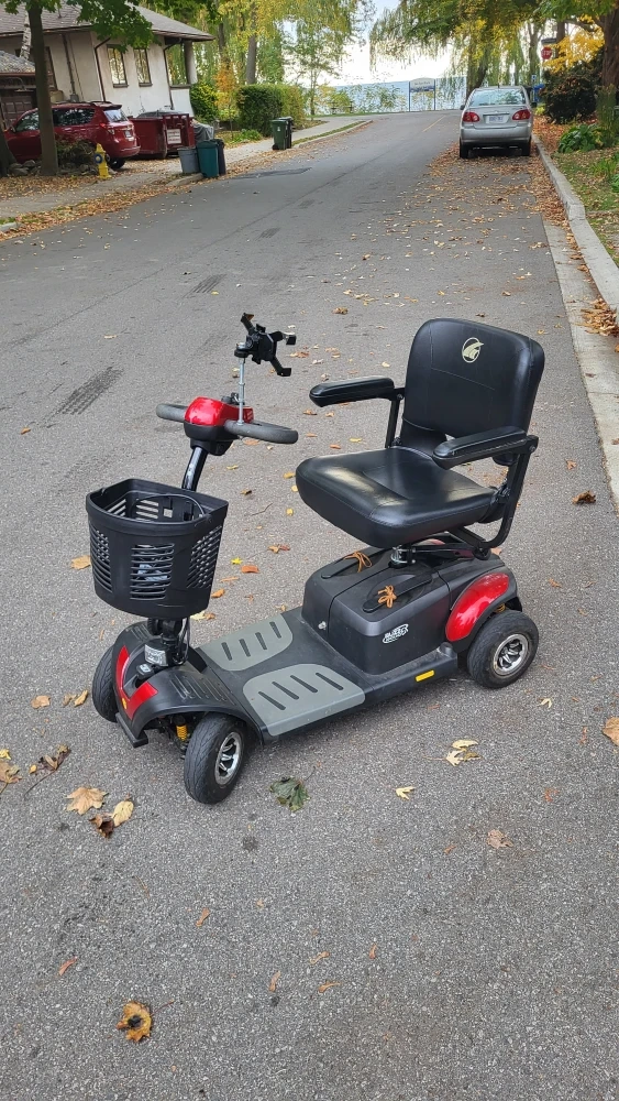 Selling a Golden Technologies Buzzaround EX mobility scooter. It's in great condition and ready for a new home. It features a comfortable seat, a front basket, and a convenient phone holder. Perfect for getting around town!