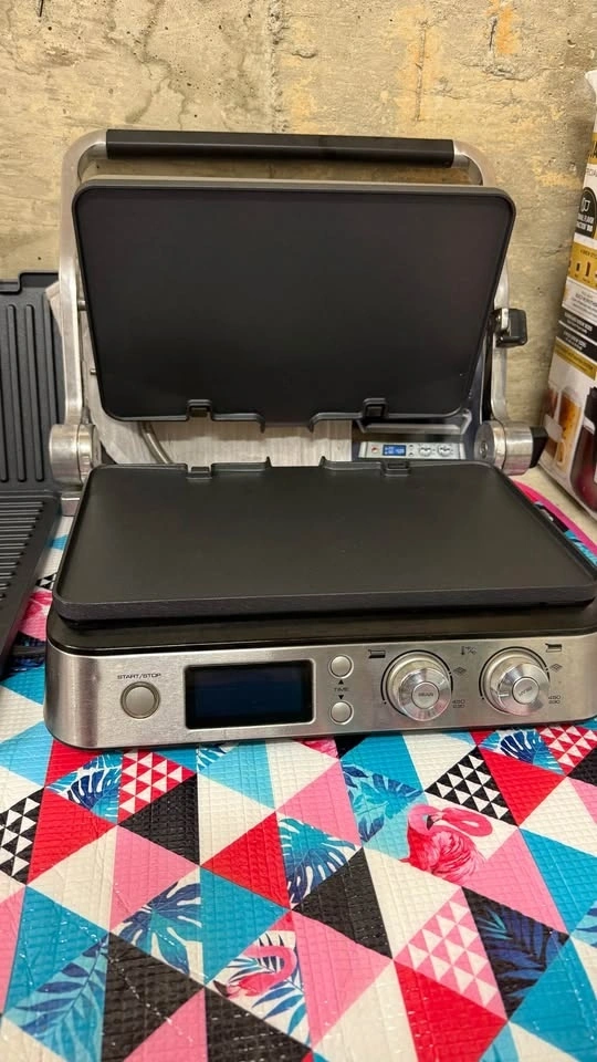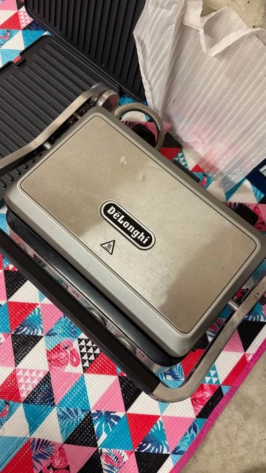 Upgrade your kitchen with the De’Longhi Livenza All-Day Grill — a powerful, versatile digital grill perfect for paninis, burgers, steaks, vegetables, sandwiches, and breakfast foods. This unit is used but in great working condition, and it comes with brand new grill and flat plates that have never been used. Fantastic value compared to the original price of around $360.