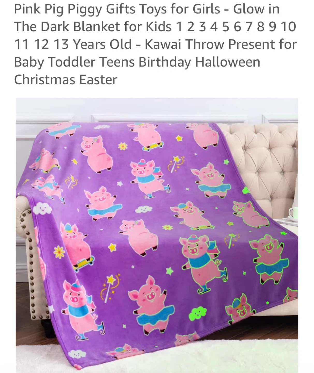 This adorable pink pig blanket is perfect for kids! It's glow-in-the-dark, making it a fun and comforting addition to any bedroom. It's super soft, skin-friendly, breathable, and machine washable! It’s $50 on Amazon