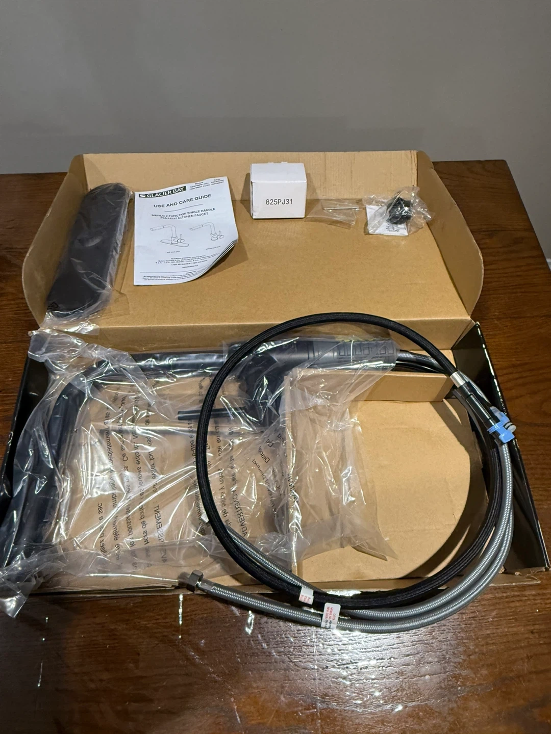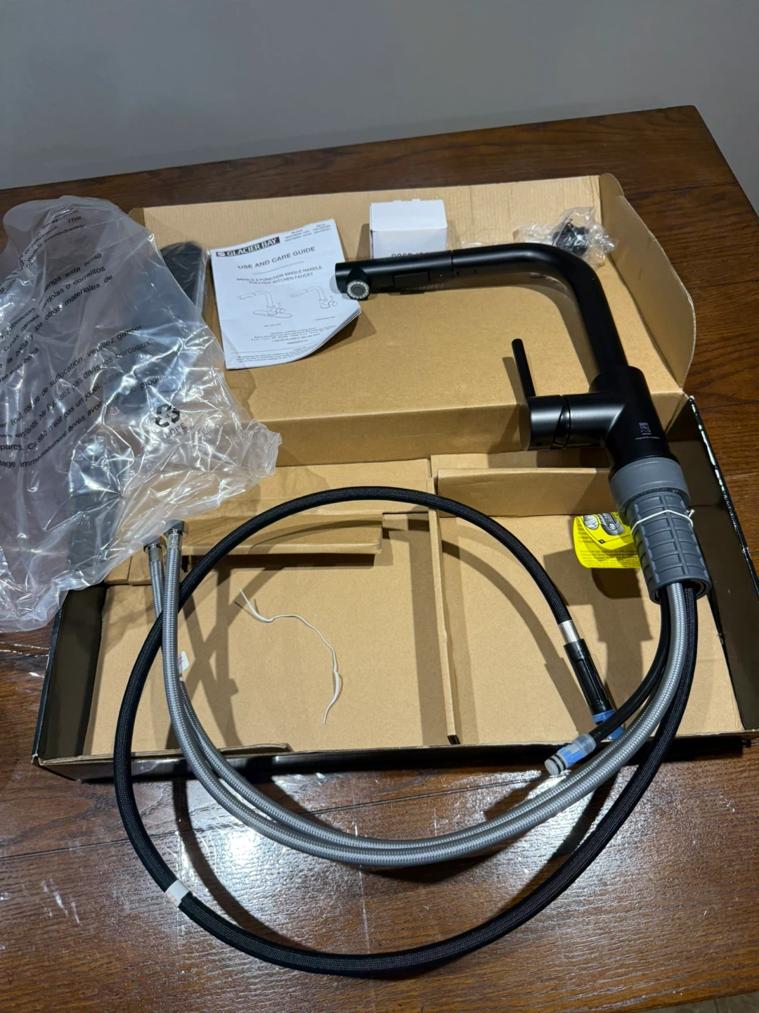 Selling a brand new Glacier Bay Menlo pull-out kitchen faucet in matte black! It's still in the box and includes all the original components and illustrated instructions.