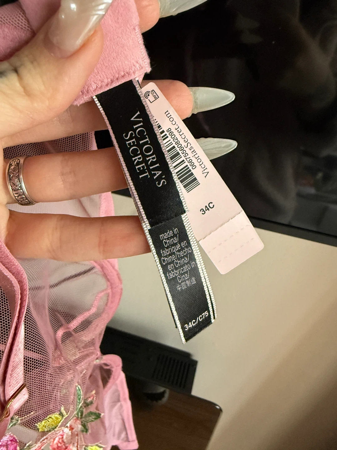 Selling a cute Victoria's Secret bra in size 34C! It's a lovely pink colour with floral embroidery. Perfect for adding a touch of sweetness to your lingerie collection