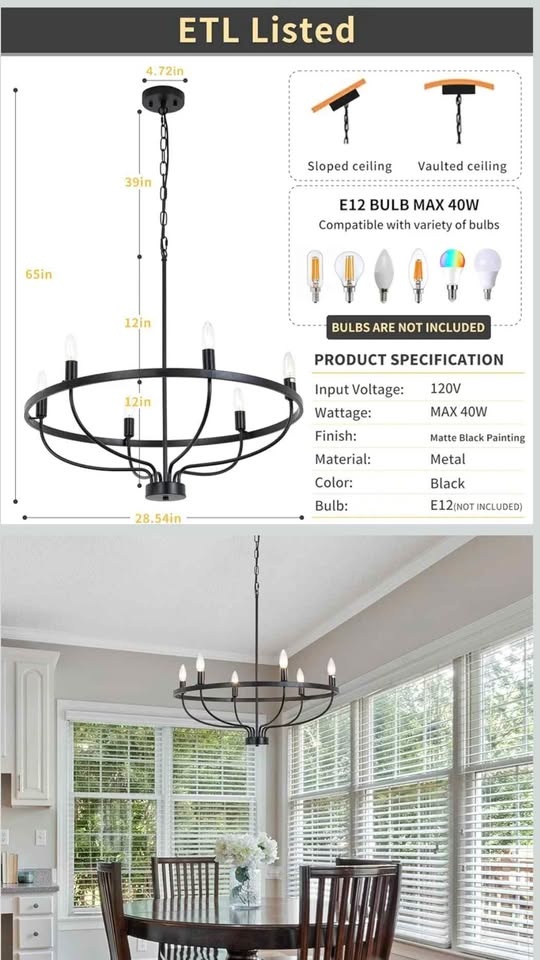 Black Chandelier Pendant Light for Bedroom, Kitchen, Dining Room, Hallways