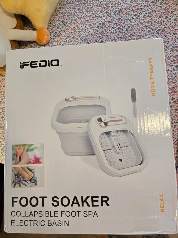 I'm selling a brand new IFEDIO Collapsible Foot Spa! It is an electric basin that offers light therapy to maintain temperature. It's easy to use and pleasantly relaxes the feet for herbal and medicinal therapies. It also has a foldable structure, making it safe, reliable, and elegant. It has a capacity of 7.5L and power of 505W / 120V / 60Hz.