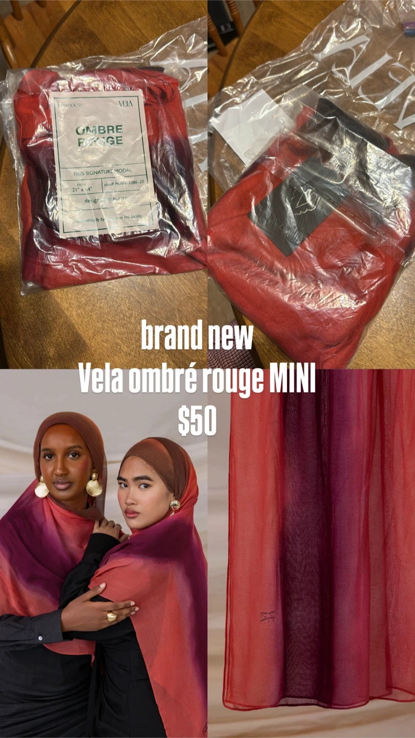 Buy & SellBrand New Vela Ombré Rouge Mini HijabBrand New Vela Ombré Rouge Mini Hijab$50This is a brand new Vela Ombré Rouge Mini hijab, still in its original packaging! It is made of 100% signature modal and measures 21" x 4".ConditionNewBrandVela0 chats·0 favorites·2 viewsSELLERakhterRegent Park150 reviewsWHERE TO MEETCheck Location