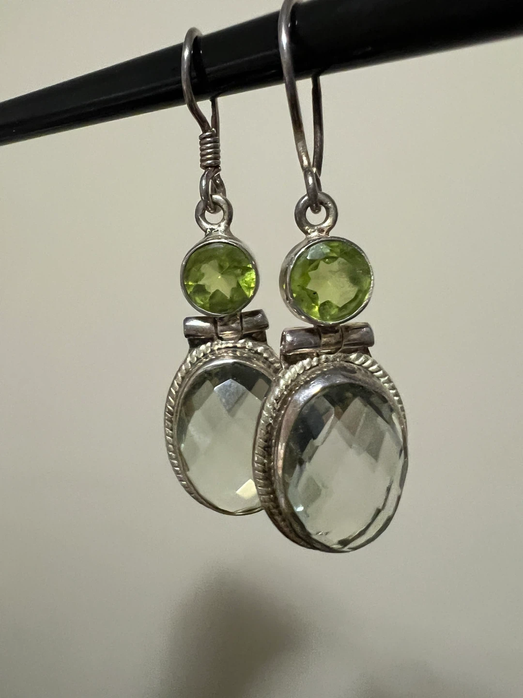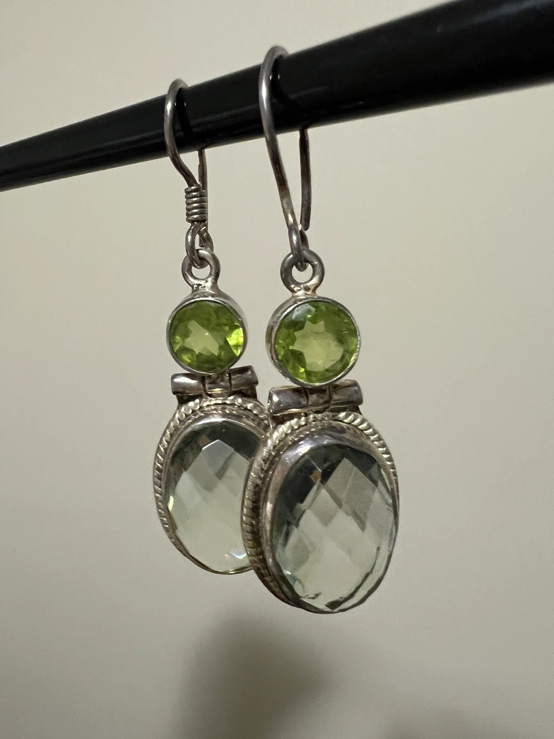 Sterling Silver Earrings with Green Amethyst & Peridot
