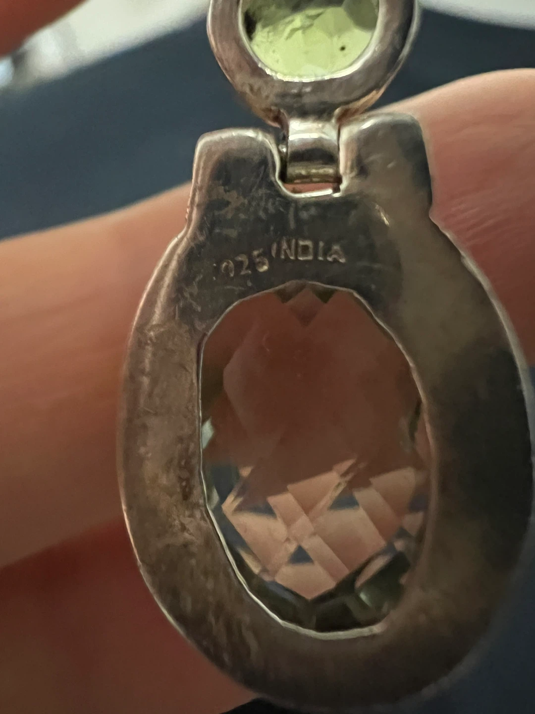These are a pair of lovely sterling silver earrings! They feature green peridot and blue topaz stones. The earrings are stamped with '925 INDIA'.