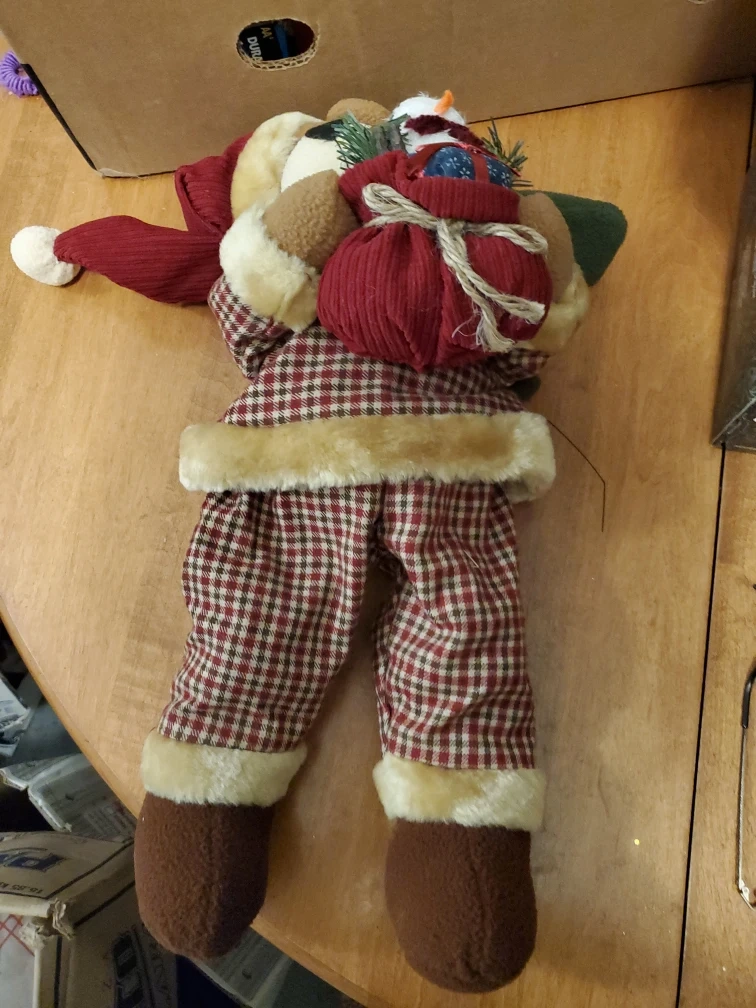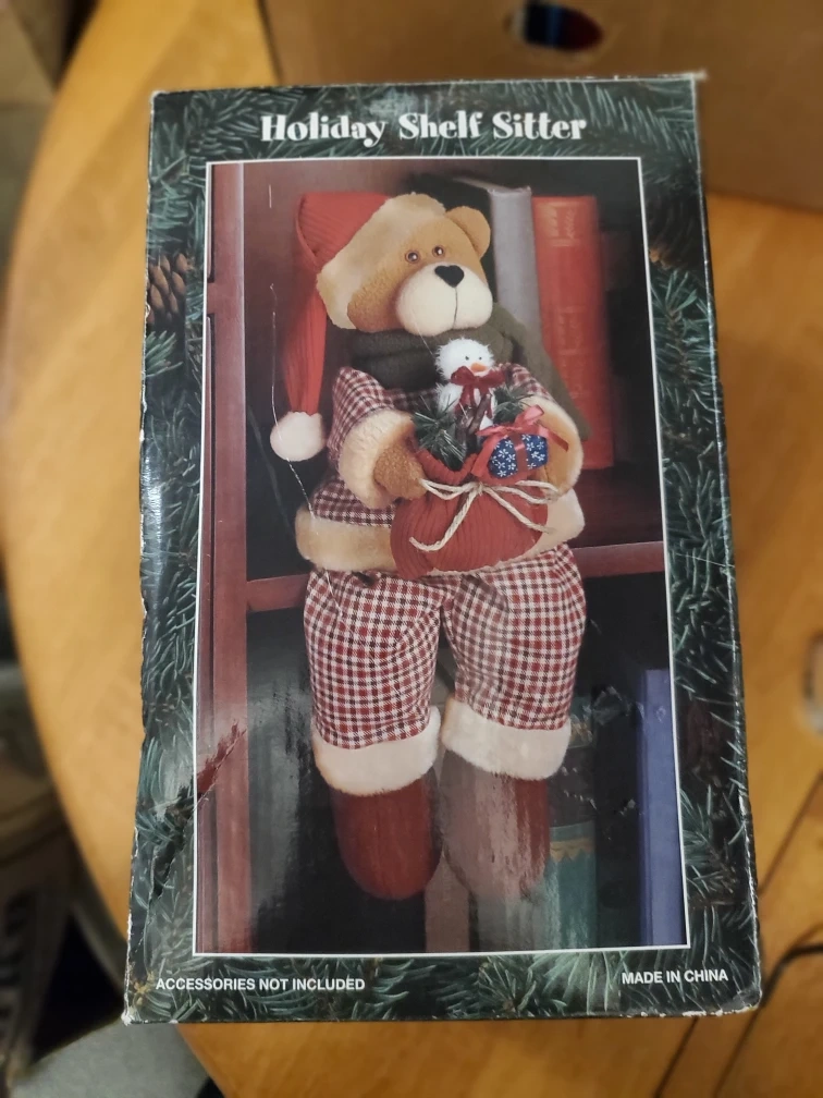 Selling a brand new Holiday Shelf Sitter! This adorable bear is designed to sit upright on a shelf or ledge, adding country charm to your holiday décor. It's weighted on the bottom for stability and comes in its original box