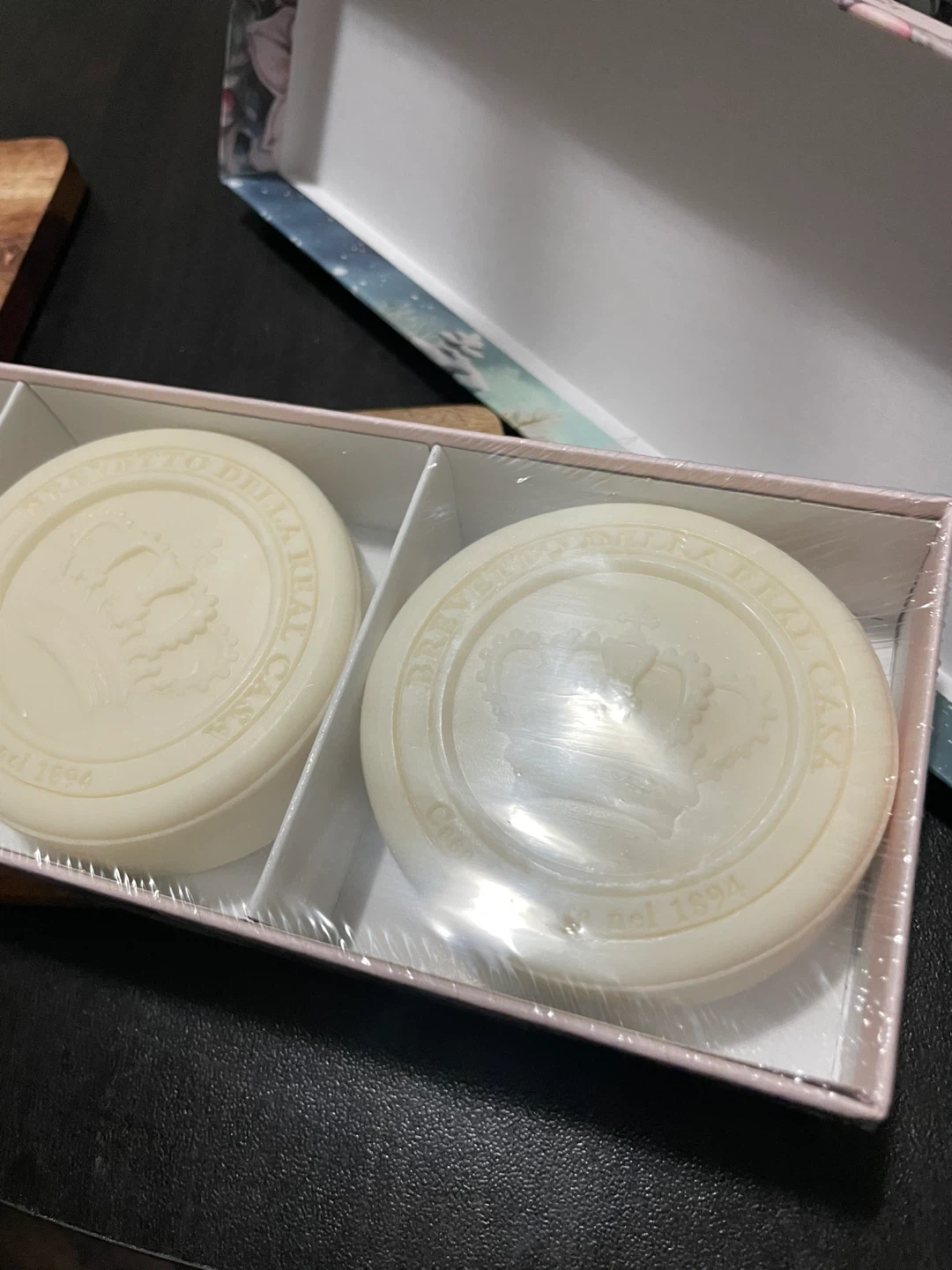 Selling a brand new Frozen Rose hand soap set, Rosa di Ghiaccio. This Tuscan handmade soap comes with extra moisturizing and creamy effect. The set includes 3 x 115 g soaps, for a total net weight of 345 g. Comes in the original box