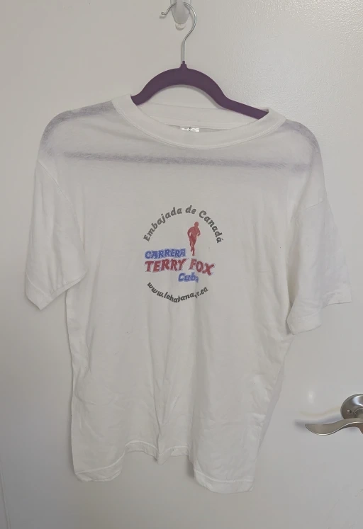 Buy & SellTerry Fox Run Cuba Shirt - Men's Size SmallTerry Fox Run Cuba Shirt - Men's Size Small$29Selling a white Terry Fox Cuba T-shirt with a graphic design. It is a size small and made of 40% polyester and 60% cotton.ConditionLike new0 chats·0 favorites·2 viewsSELLERverifiedNurissaSteeles61445 reviewsWHERE TO MEETBamburgh Circle