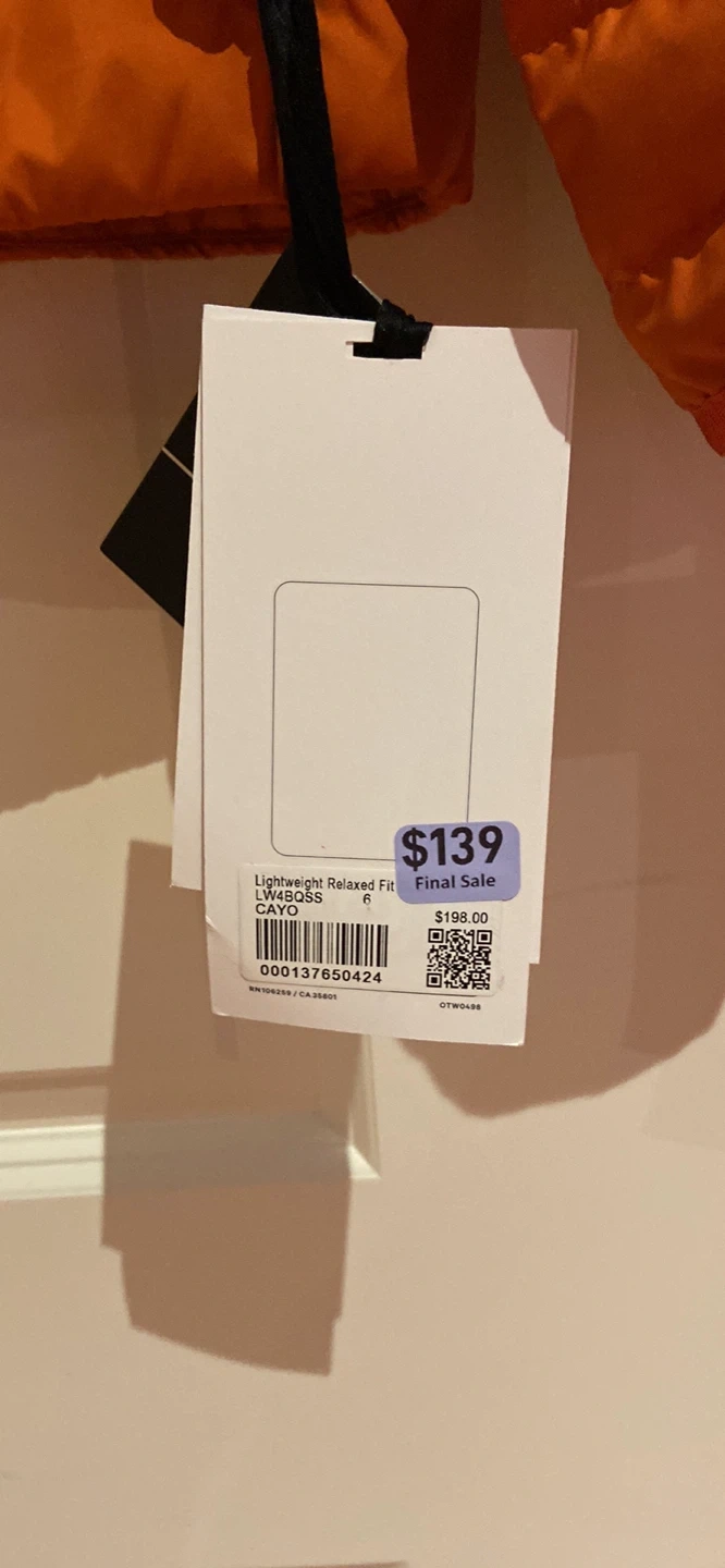 Selling a Lululemon Primaloft puffer jacket in a vibrant orange colour! It's in great condition. The jacket is a size 6 and features a quilted design and Primaloft insulation to keep you warm and cozy. Perfect for those cooler Canadian days!