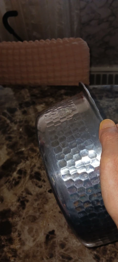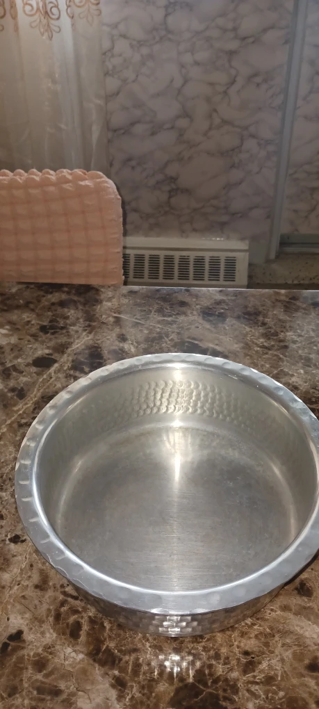It has a unique textured design. Perfect for adding a touch of retro charm to your kitchen or as a decorative piece. Pure aluminum cooking pot from India. Very good looking cooking utensils.