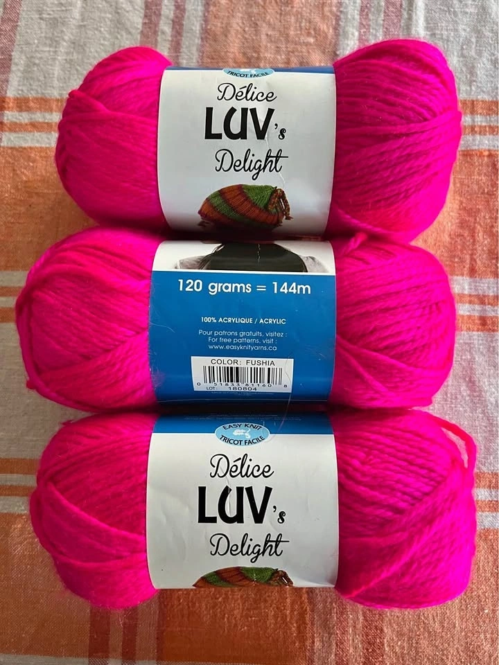 Buy & SellYarn, by Luvs DelightYarn, by Luvs Delight$10Three rolls of yarn by Luvs Delight. In Fuscia. 100% acrylic. 120g. Pickup in Courtice.0 chats·0 favorites·3 viewsSELLERangelaTown Centre100 reviewsWHERE TO MEETCheck Location