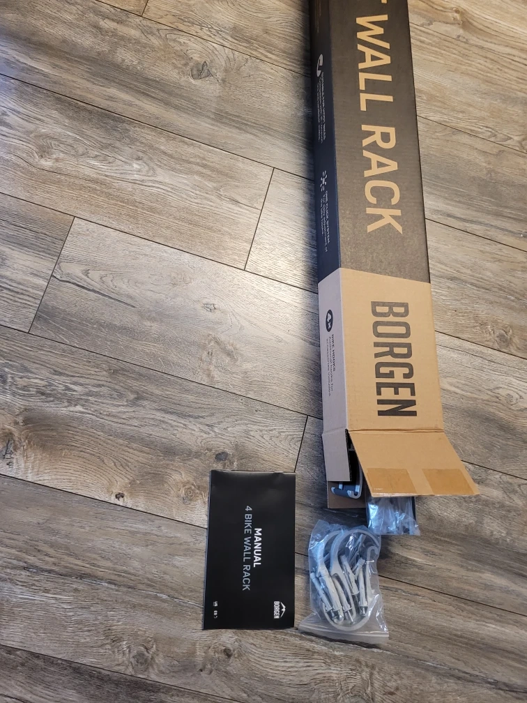 Borgen bike wall rack for 4 bikes. It comes with additional hooks and the manual. Great for saving space in your garage or apartment! For more info call or text 416 8441313