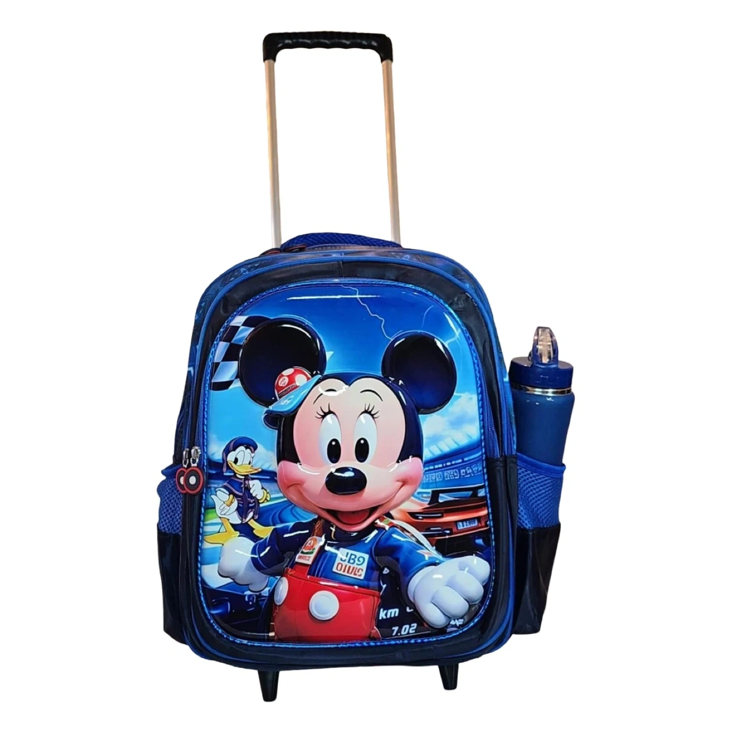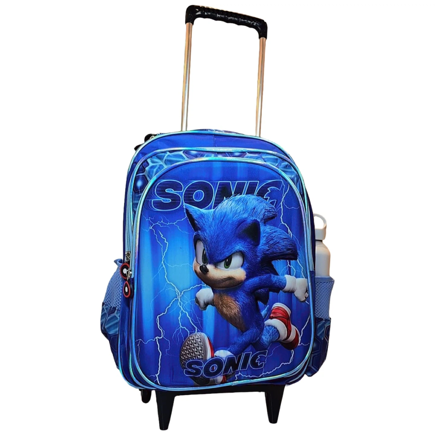 I'm selling a kids' rolling backpack featuring Mickey Mouse and Sonic the Hedgehog! Great for school or travel, these backpacks are in excellent condition and ready for a new adventure. They come with a water bottle holder on the side.