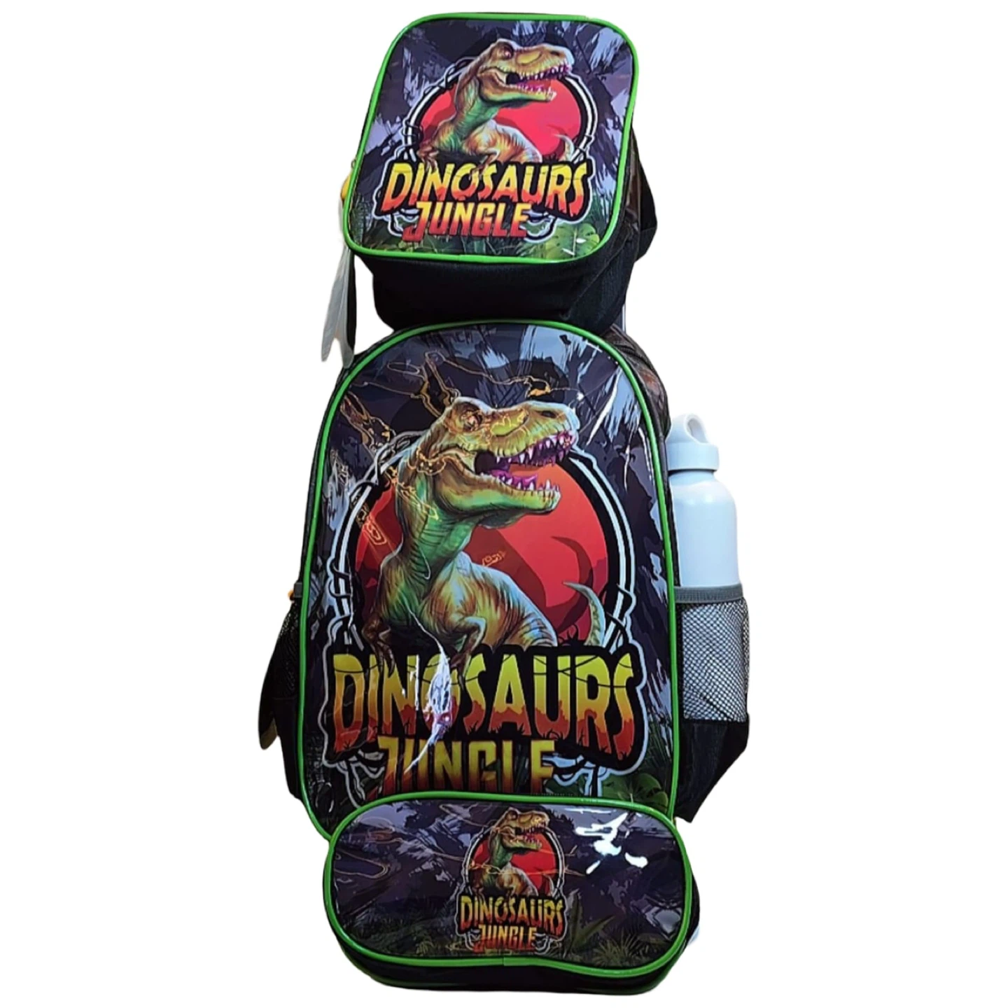 I'm selling a variety of kids' rolling backpack sets featuring popular characters like Roblox, Sonic, Dinosaurs Jungle, and Spider-Man. Each set includes a rolling backpack, a lunch bag, and a pencil case. Perfect for school!