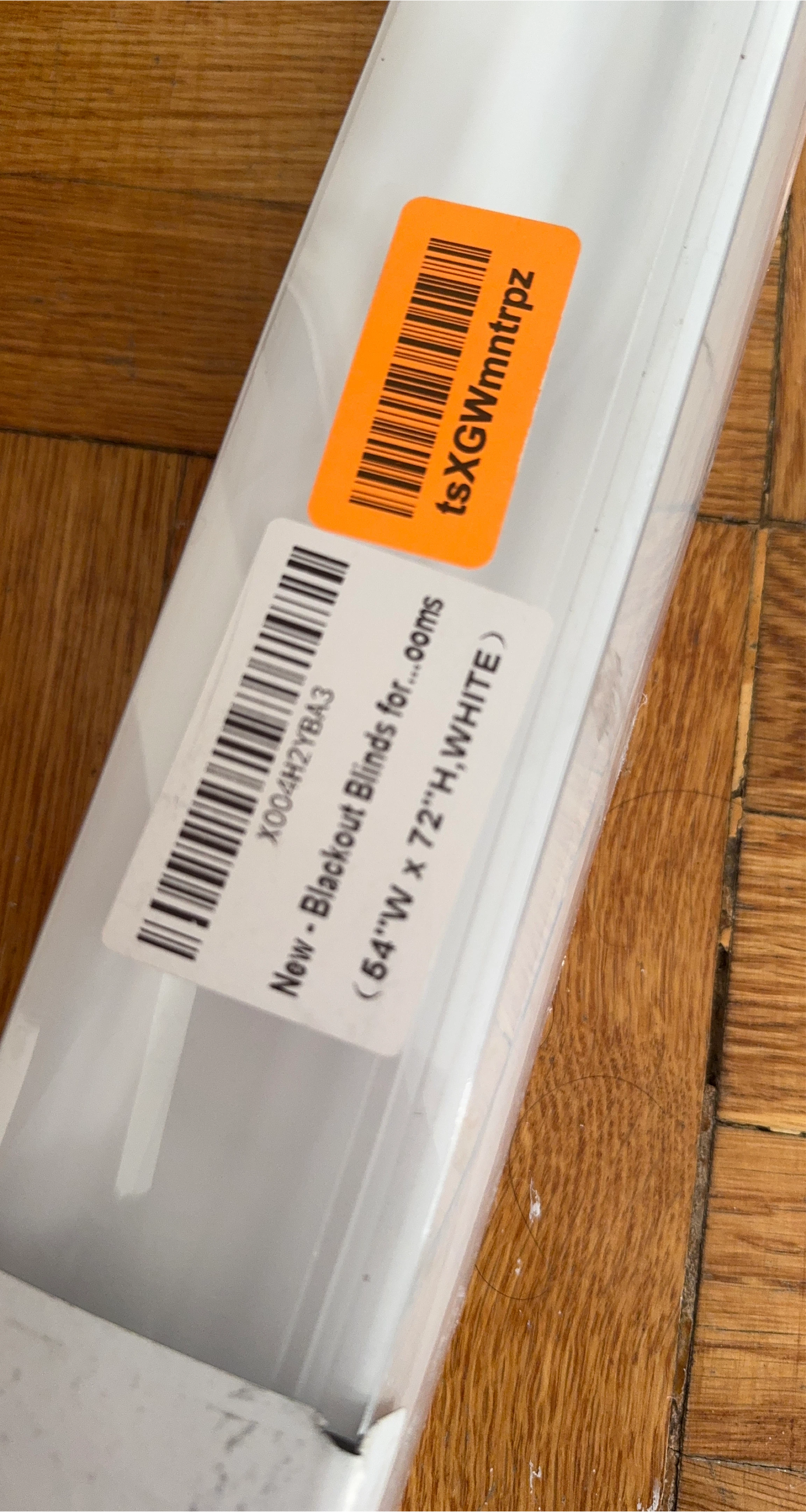 Selling a new set of blackout blinds, still in the original packaging! These blinds are white and measure 64 inches wide by 72 inches high, perfect for blocking out light in any room
