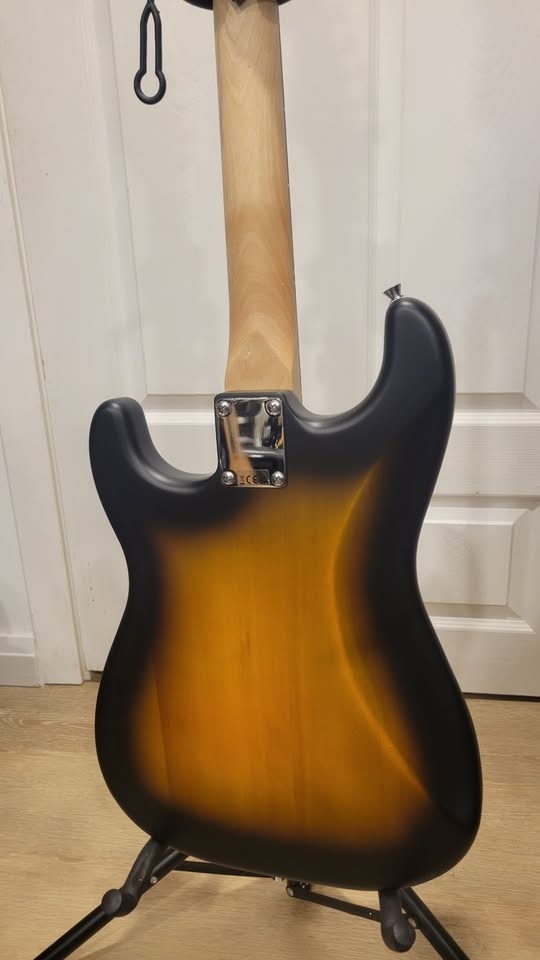 This 2015 guitar is a lightweight Strat-style guitar with a slim C-shaped maple neck and laurel fingerboard. It features an HSS pickup setup (humbucker + two single coils) with 5-way switching for versatile tones. The hardtail bridge gives stable tuning, and the chrome hardware and sunburst finish complete the classic Strat look.
