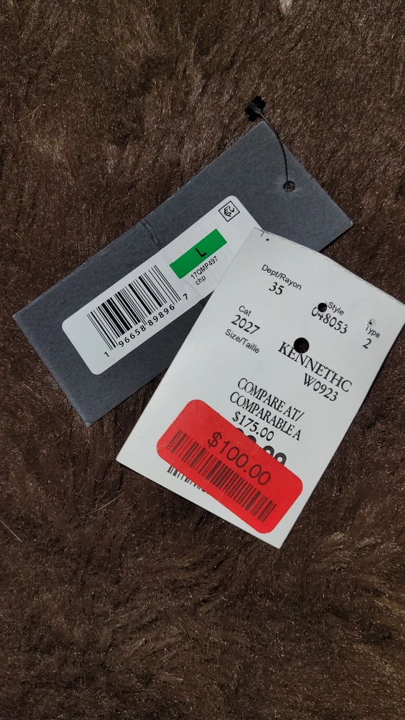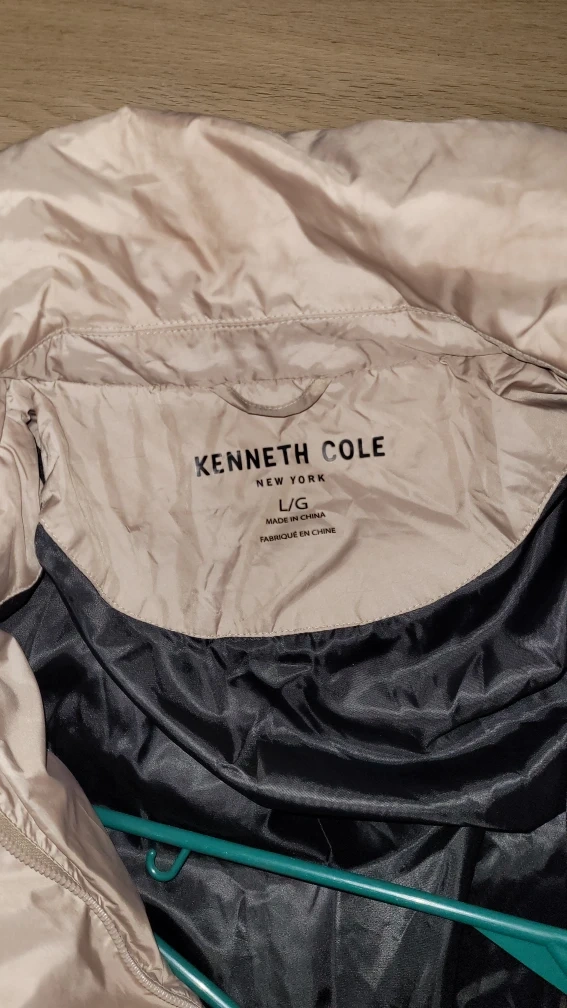 Selling a Kenneth Cole New York puffer coat in size large. It's a stylish and warm coat, perfect for cold days! The original tag shows a comparison price of $175.
