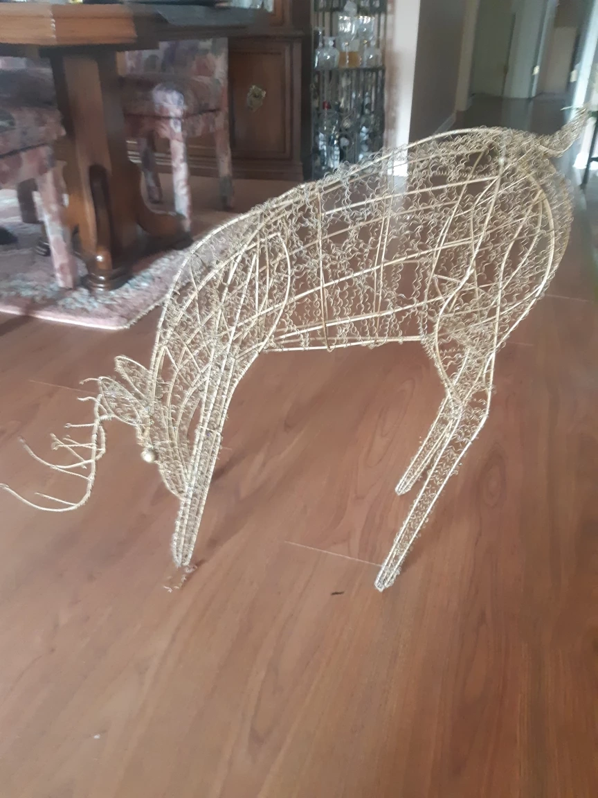Buy & SellWire Reindeer DecorationWire Reindeer Decoration$30Wire reindeer decoration, perfect for adding a touch of whimsy to your home decor!ConditionGood0 chats·0 favorites·5 viewsSELLERverifiedJMLWelland600 reviewsWHERE TO MEETCheck Location