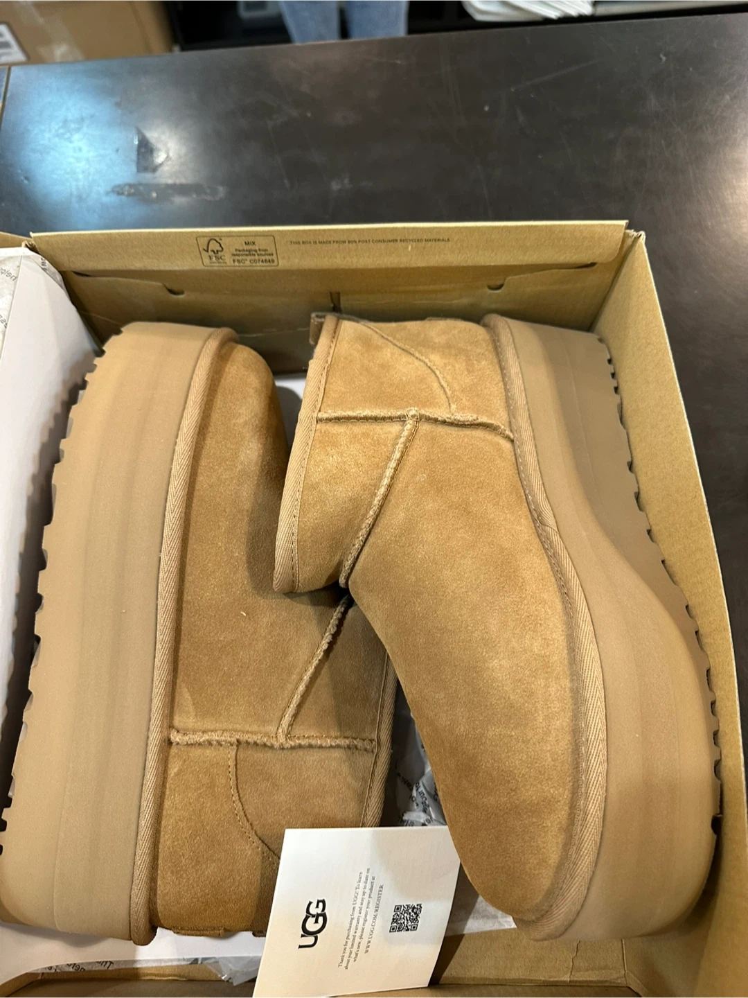 Selling a pair of UGG Classic Mini Platform boots in a beautiful tan colour! These are super stylish and comfy, perfect for adding a little height and warmth to your look. Comes with the original box