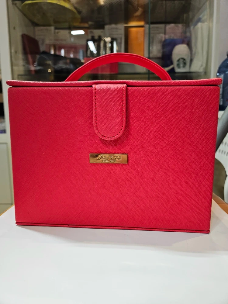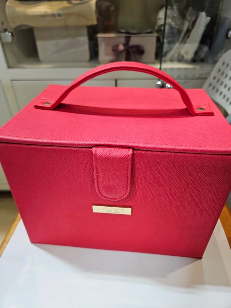 Selling a Shiseido makeup box in a vibrant red colour! It features a convenient handle for easy carrying and a mirror inside, perfect for on-the-go touch-ups. It's in great condition, ready to organize your beauty essentials