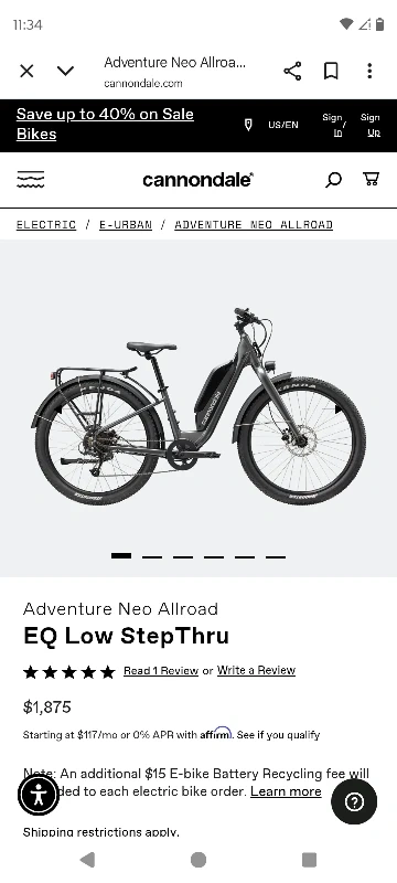 Selling a Cannondale electric bike! It's in good condition and ready for some great rides. Perfect for getting around town or enjoying some outdoor adventures only has $360 miles on it it's practically brand new