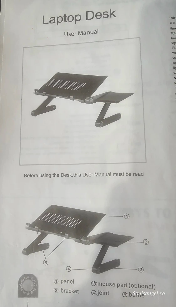 Adjustable Laptop Desk - User Manual included