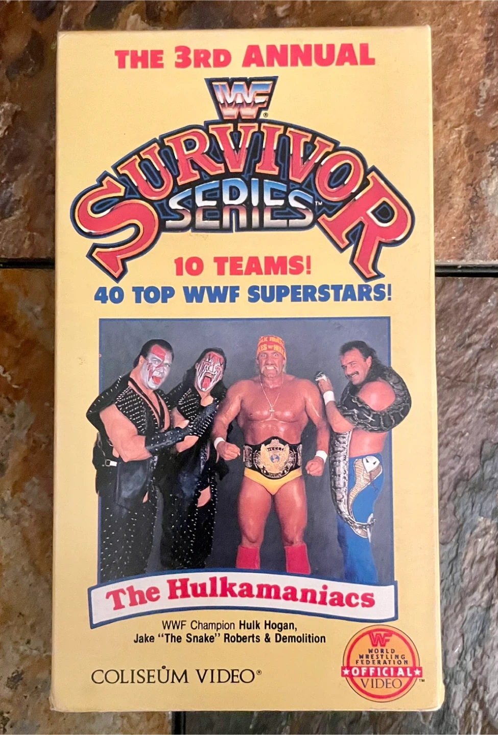 Selling a WWF 3rd Annual Survivor Series VHS tape. It features 10 teams and 40 top WWF superstars. Includes The Hulkamaniacs, The Million $ Team, Ultimate Warriors, and more! All matches are complete and 3 hours spectacular