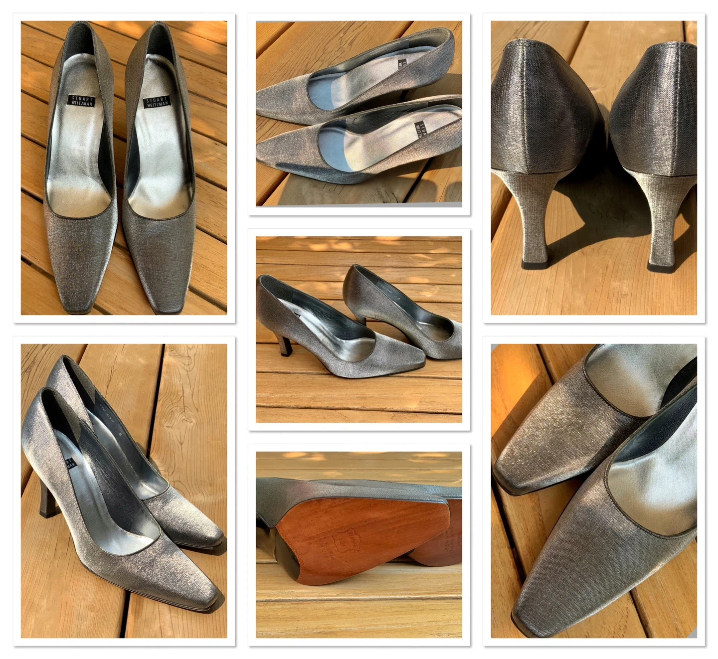 BRAND NEW STUART WEITZMAN size 7 silver/grey silk classic heels