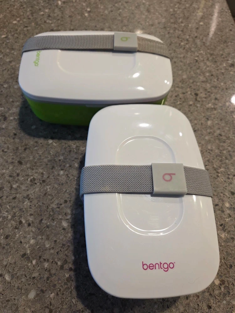 Two Bentgo kids lunch boxes, perfect for school lunches! They are in great condition and come with the utensil inserts. They are dishwasher and microwave safe, making them super convenient for everyday use! They are dishwasher, freezer and microwave safe π.