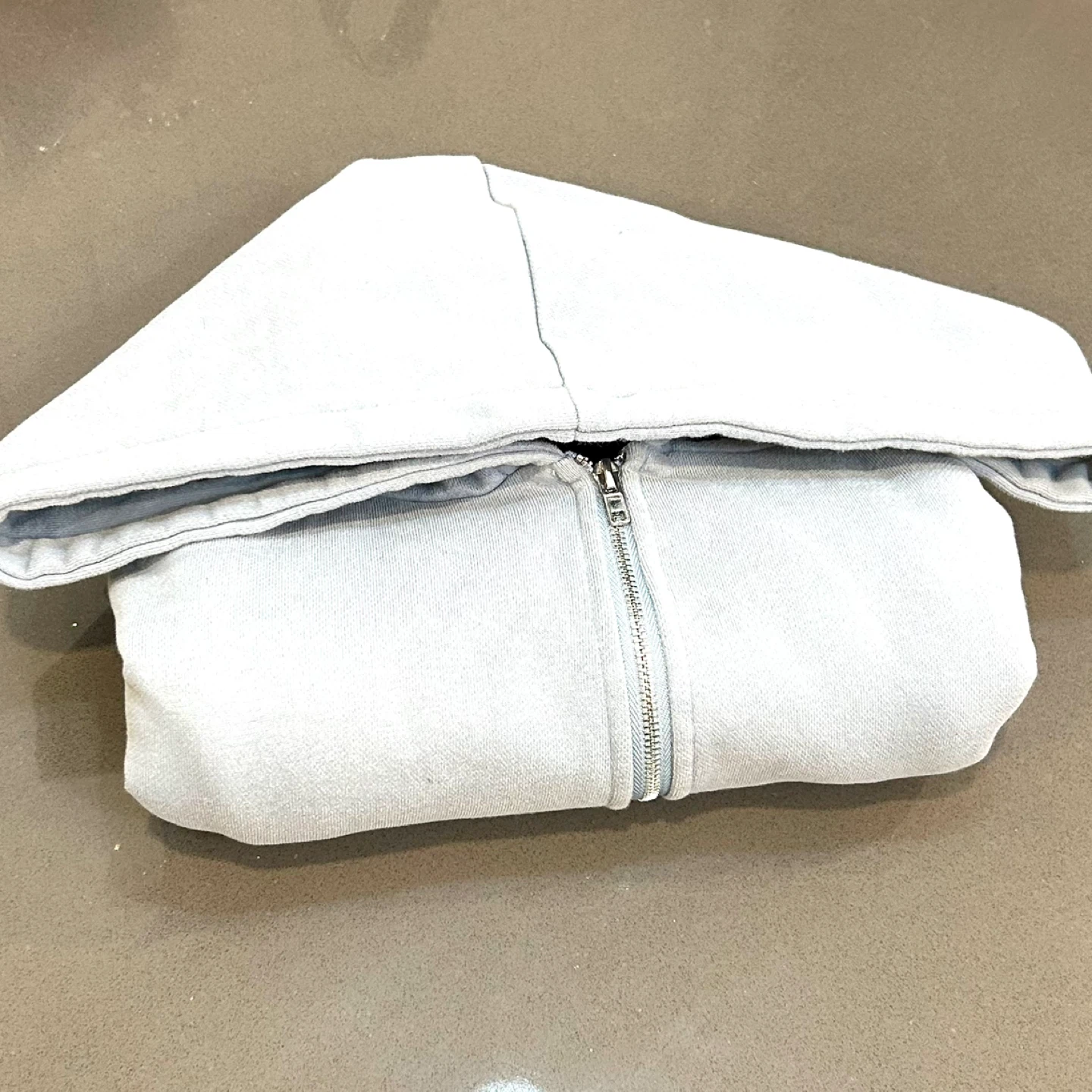 Dusty BLUE cropped over-sized Zip-Up Hoodie - Size M