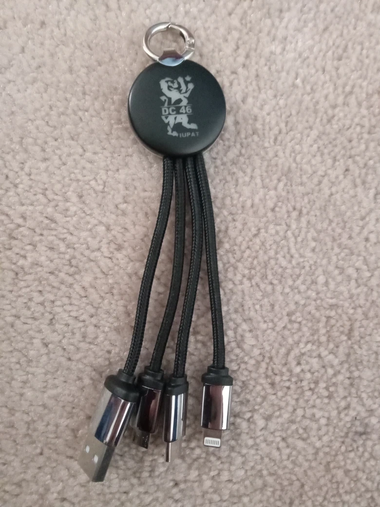 Selling a multi-connector keychain charger featuring the DC 46 IUPAT logo! It's a handy little gadget to keep with you for charging on the go!