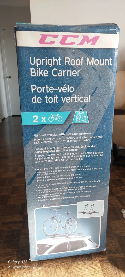 CCM Upright Roof Mount Bike Carrier - New in Box!