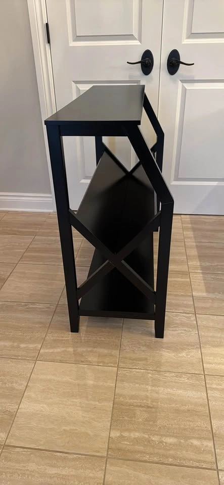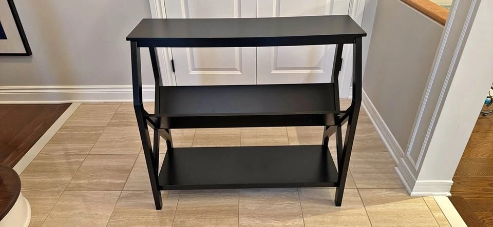 Selling a dark brown console table / bookshelf and has two shelves for extra storage or display.