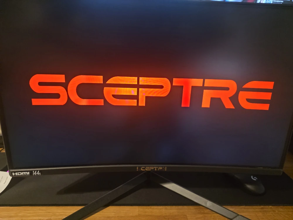 Selling a Sceptre L24 curved gaming monitor. It's in great shape and ready for a new home. It comes with the power adapter. The display information indicates it has a resolution of 1920 x 1080 and a refresh rate of 144.000 Hz.