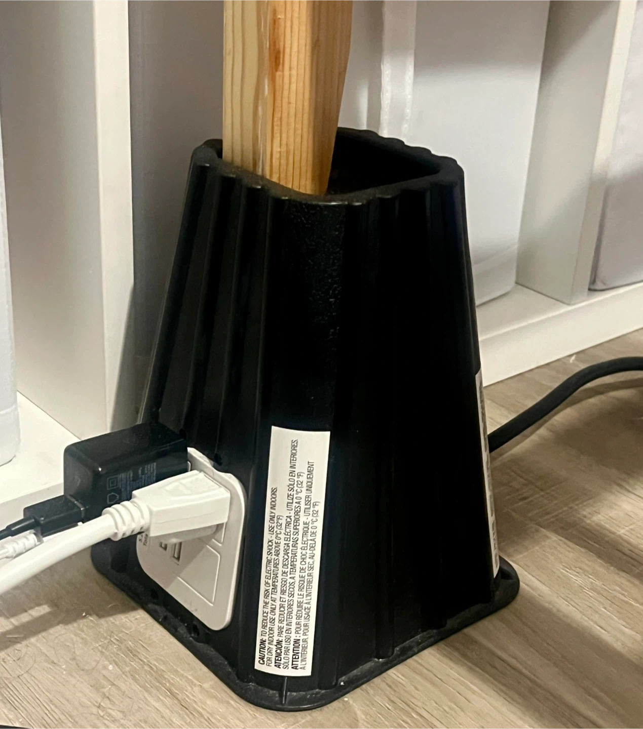 These are bed risers that also have built-in outlets and USB ports! They're super handy for raising your bed and keeping your devices charged. Perfect for small spaces!