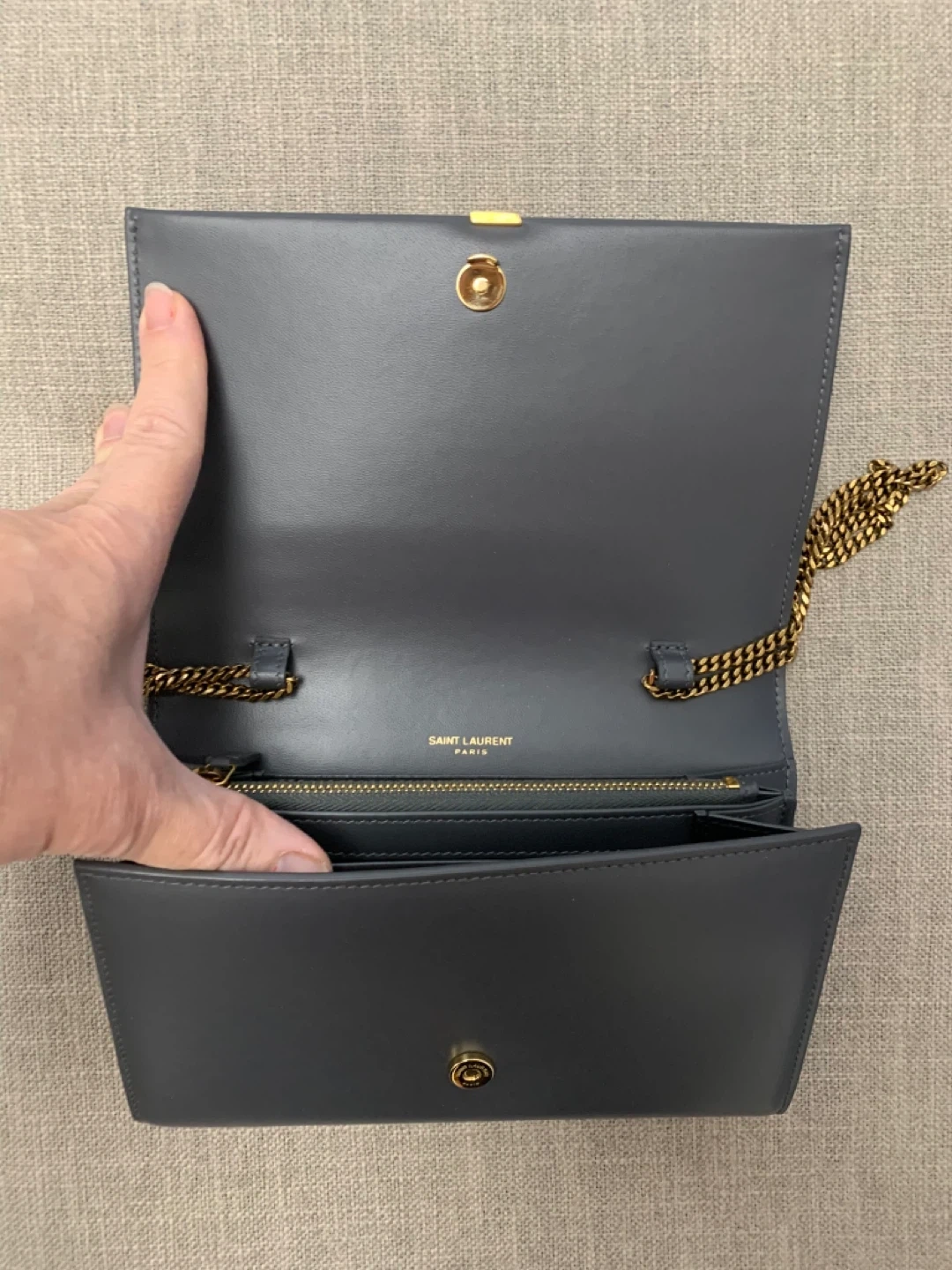 Selling a Saint Laurent Wallet on Chain in a beautiful grey colour! It's in great condition and comes with the original box and dust bag. Perfect for evenings out or when you want to travel light.