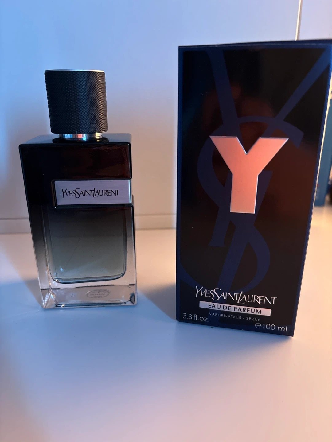 This is the Yves Saint Laurent Y Eau de Parfum. It's a 3.3 fl. oz. (100 ml) spray bottle. The box is included with the purchase.