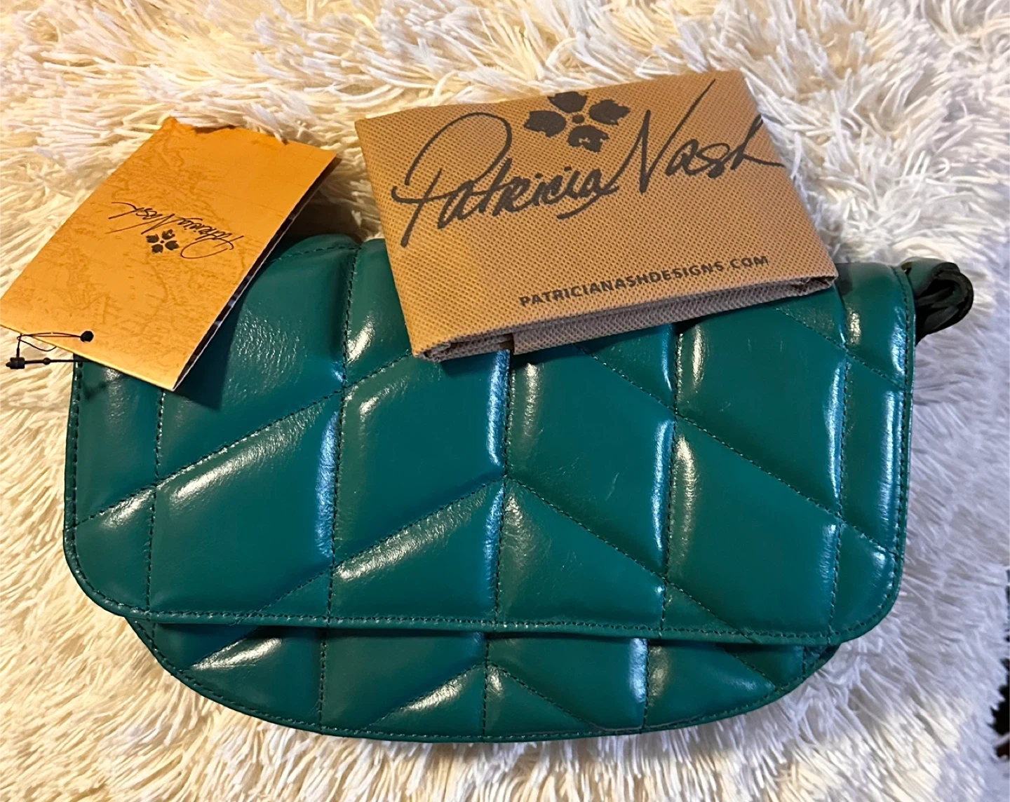 Check out this brand new Patricia Nash shoulder bag! It's a beautiful shade of green leather and comes with its original tags and packaging. Perfect for adding a pop of colour to your outfit!