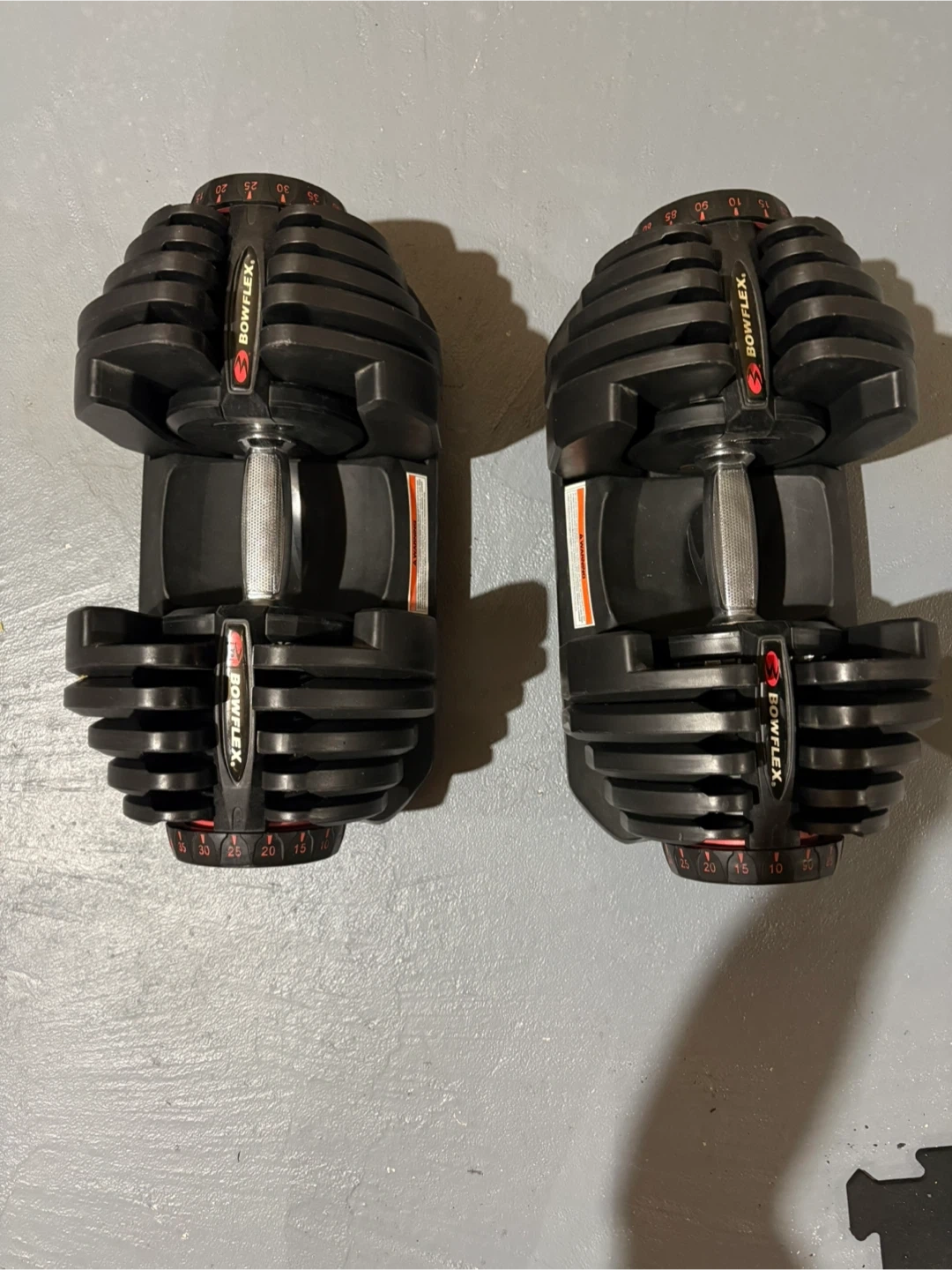 Selling a pair of Bowflex SelectTech adjustable dumbbells. These are great for saving space and getting a full workout at home. Adjust the weight from 10 to 90lbs with the turn of a dial (increment of 5 pounds). They're in good condition and ready for a new home!