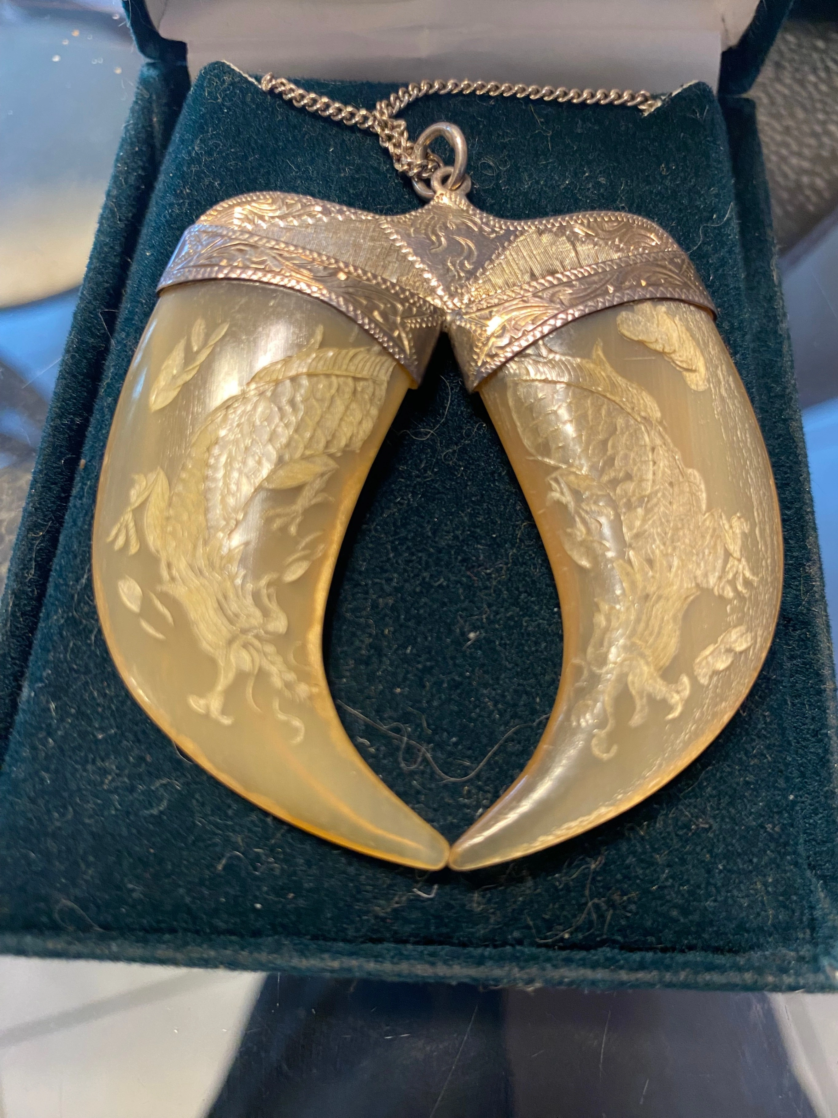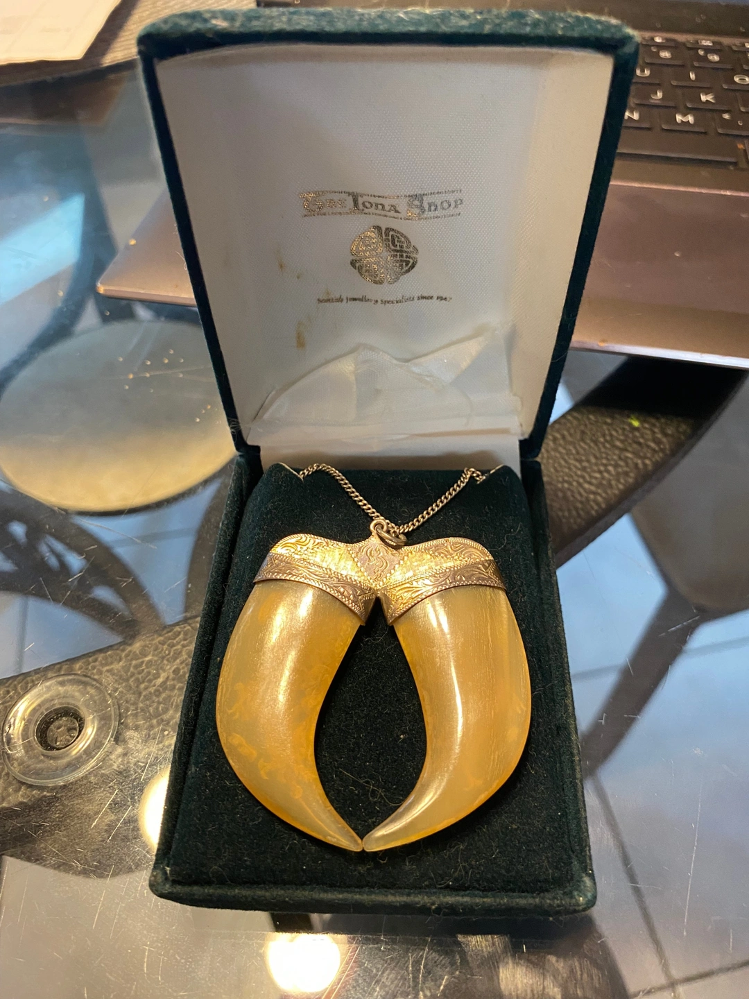 Discover a touch of classic elegance with our British Vintage Sterling Silver Double Tiger Claw Necklace from The IONA Shop out of Oban (now closed forever).