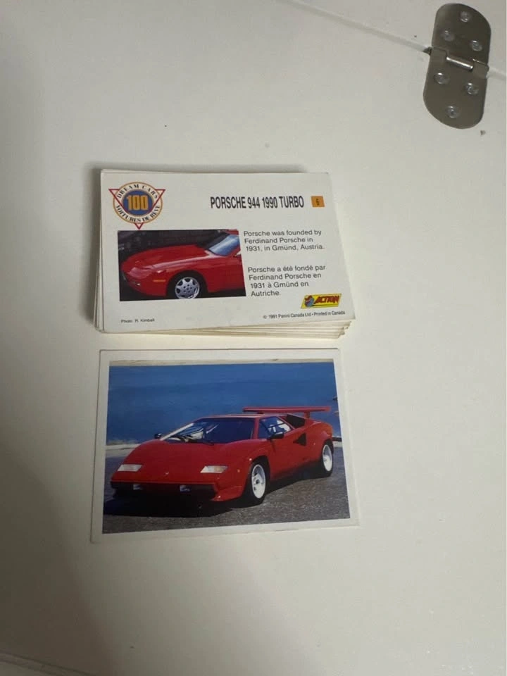 For sale is a lot of 29 vintage 1991 Panini “Dream Cars – 1st Collector’s Edition” cards, printed in Canada by Panini/Action.