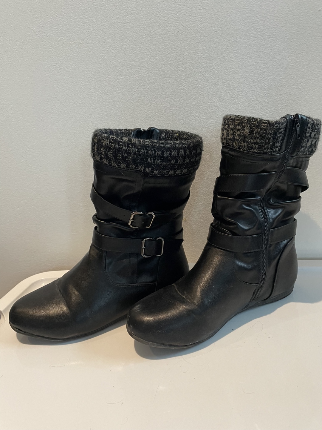 Size 8 boots. They’ve only been worn a handful of times. The inside is thick to keep you warm during winter days.